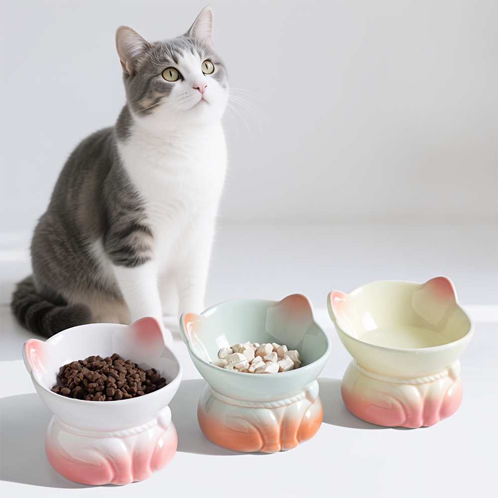 1 set of pet bowls with spoons gradient ceramic cat bowls pet bowls cat eating bowls drinking bowls dog bowls cat basins pet supplies cat bowls pet food dog food basins