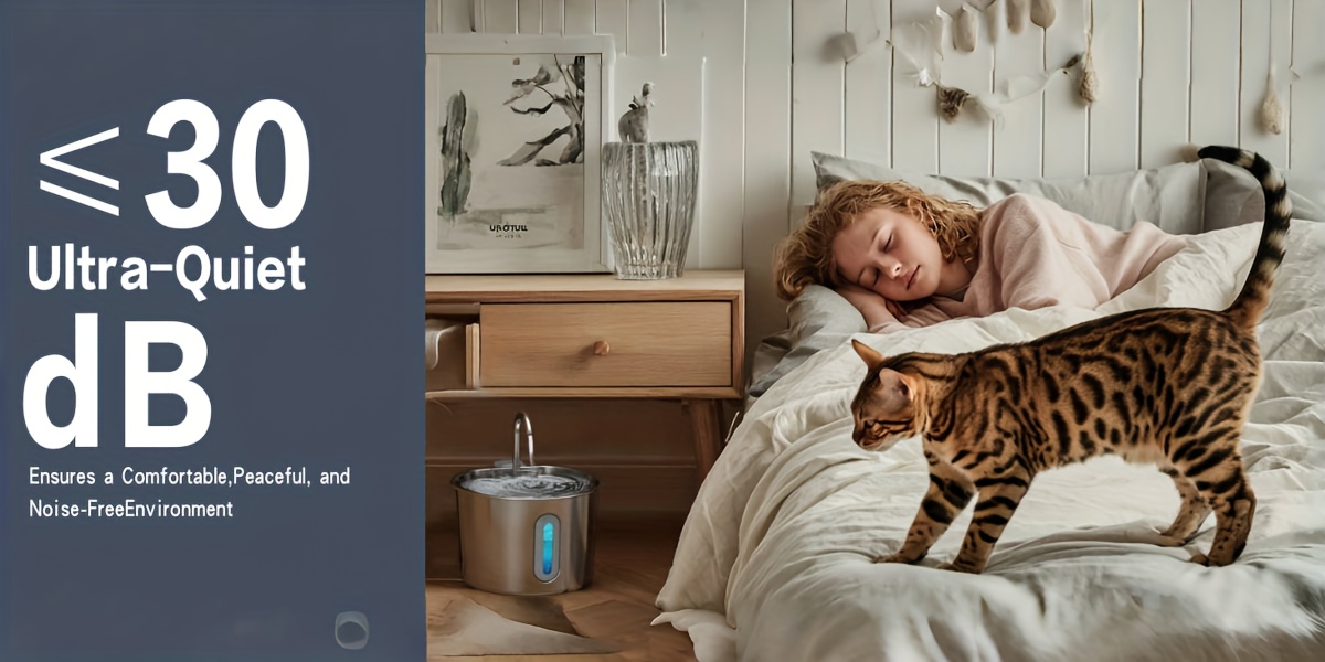 This fountain operates with a low-voltage 5V pump that produces less than 30dB, ensuring a whisper-quiet experience — the only sound you'll notice is the soothing flow of water. Perfect for those who are light sleepers and for homes that value tranquility.