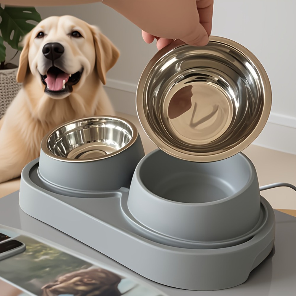 3pcs Set: 1 Stand + 2 Stainless Steel Bowls - Heavy-Duty Cat Bowl with Modern Design, Elevated Dual Pet Food and Water Dish - Detachable and Easy to Clean, Space-Saving Dual Compartment Feeding Station - Modern Pet Feeder for Medium-Sized Pets