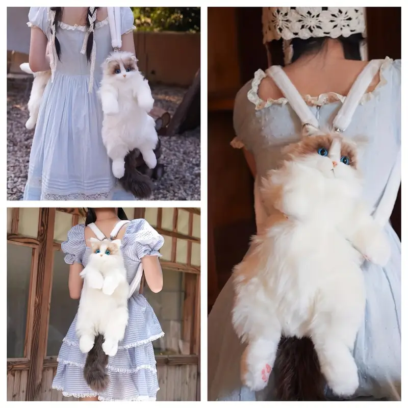 Cute Plush Animal Cat Backpacks in Various Styles, Fashionable Shoulder Bags, Crossbody Bags, Gifts with Adjustable Straps Suitable for Women.