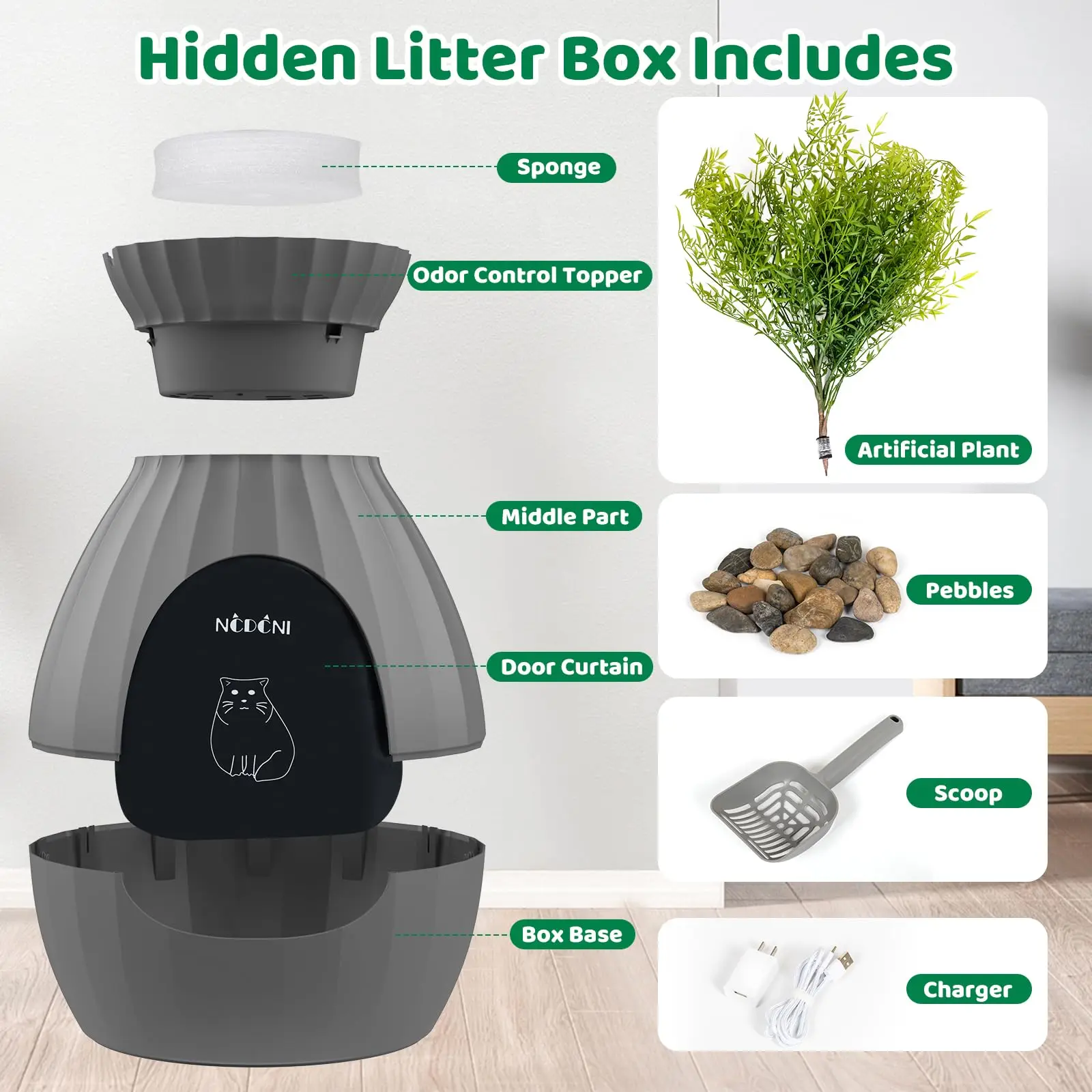– DIY Decoration: Comes with various plant options, allowing users to decorate according to personal preferences, creating a unique litter box.