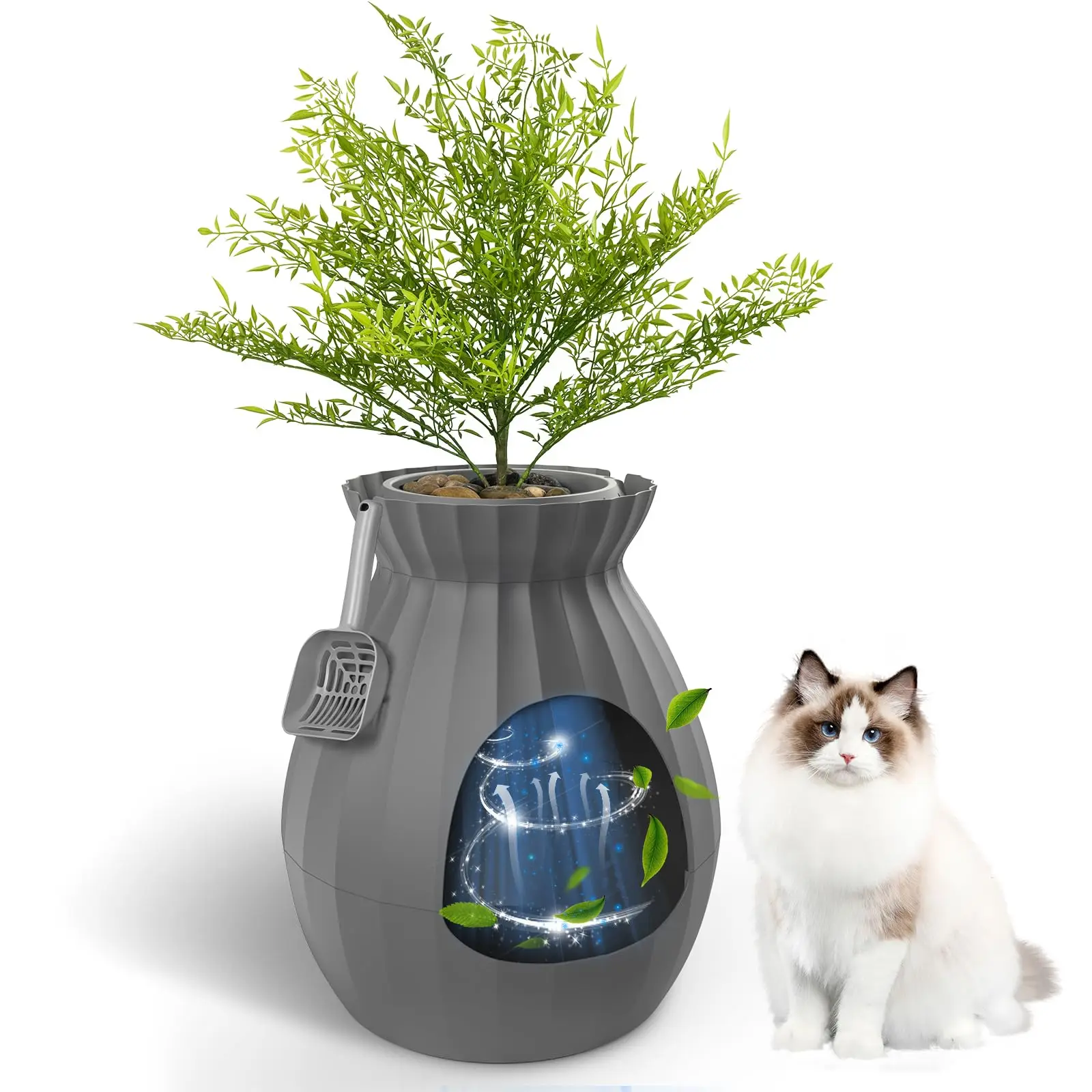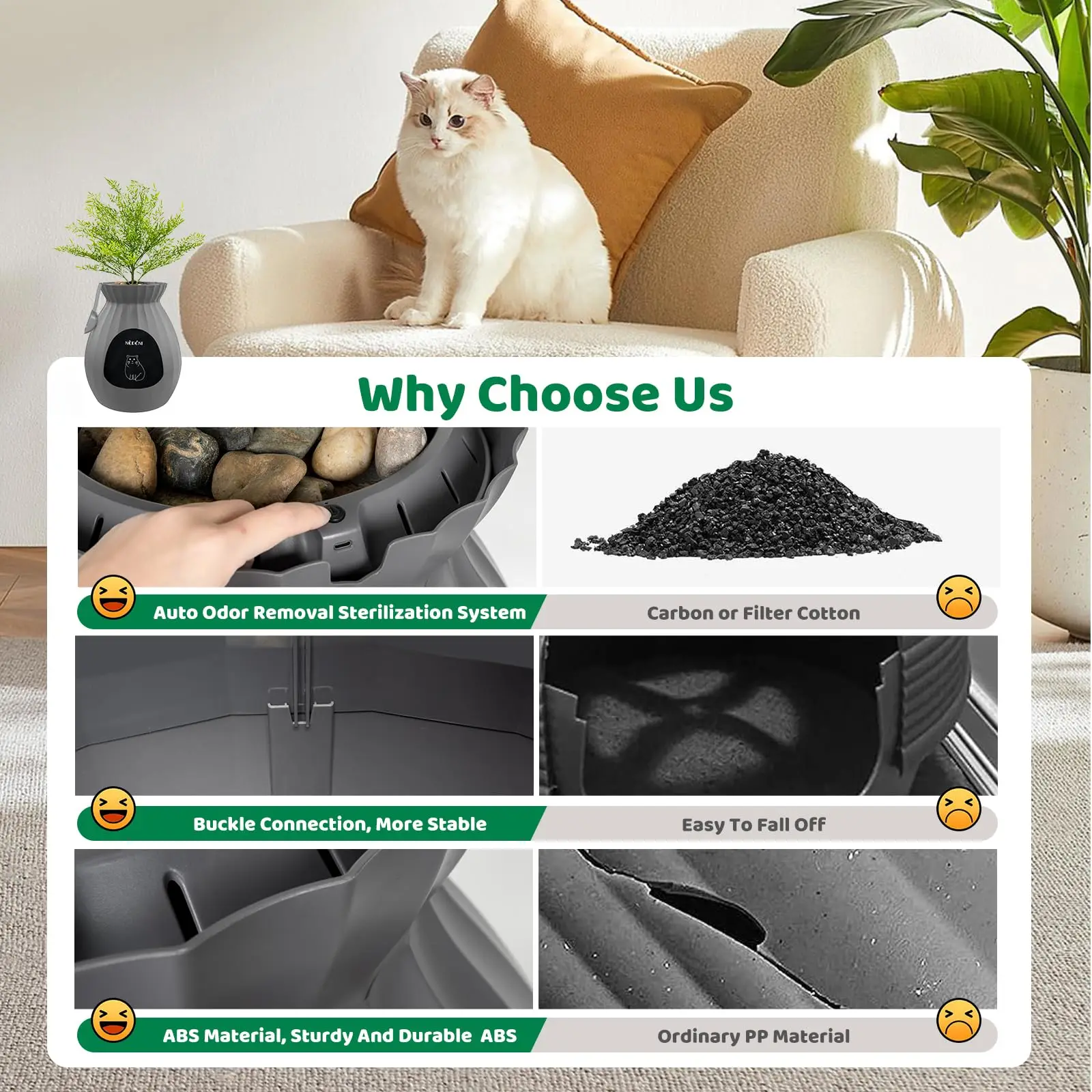 Decorative Plant Cat Litter Box with An Automatic Deodorization and Sterilization System, Flowerpot Cat Litter Box