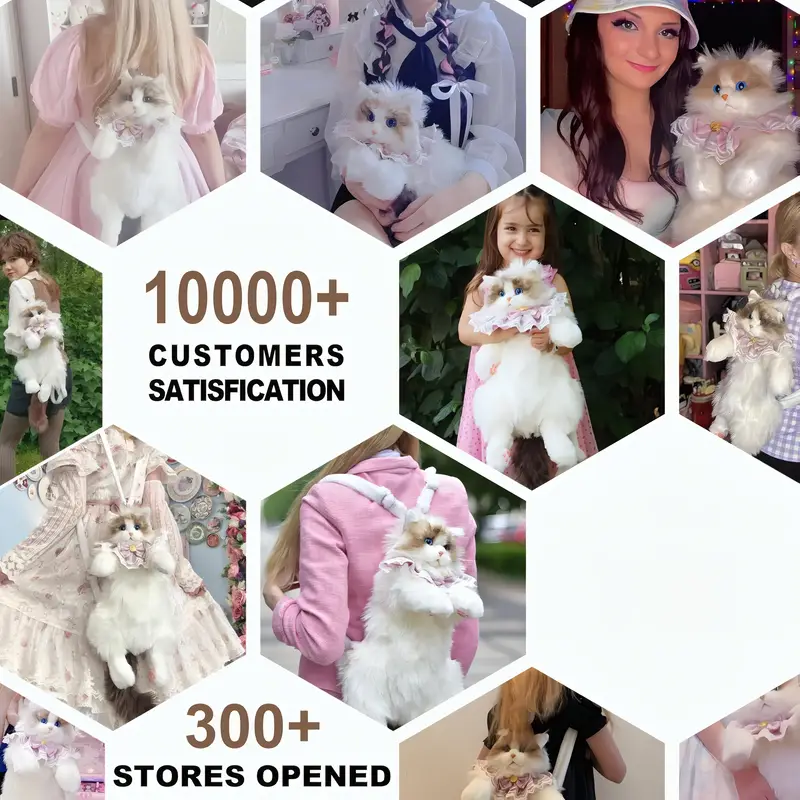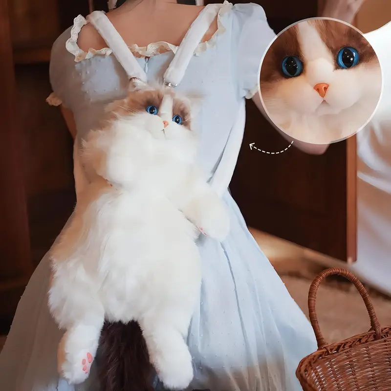 Handmade Plush Cat Student Backpack, Perfect for Cat Lovers, Ideal for Anniversaries and Birthdays, Fashionable Decorative Women's Bag, Suitable as a Partner Gift, Anniversary and Valentine's Day Present, Stylish Gift for Cat-loving