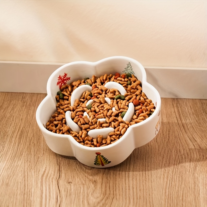1pc Whimsical Ceramic Cat Slow Feeding Bowl - Anti-Choking, Puzzle Design, Neck Protection, Small Size, Suitable for Cats and Small Dogs, Easy Cleaning, Healthy Eating, Reduced Gulping and Gobbling