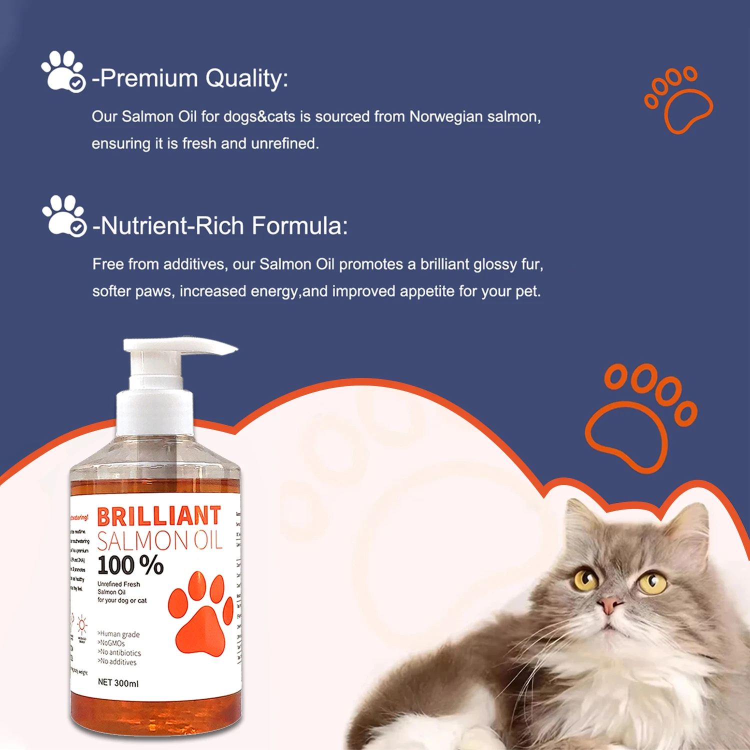 - Premium Quality: Our Salmon Oil for dogs&cats is sourced from Norwegian salmon, ensuring it is fresh and unrefined.