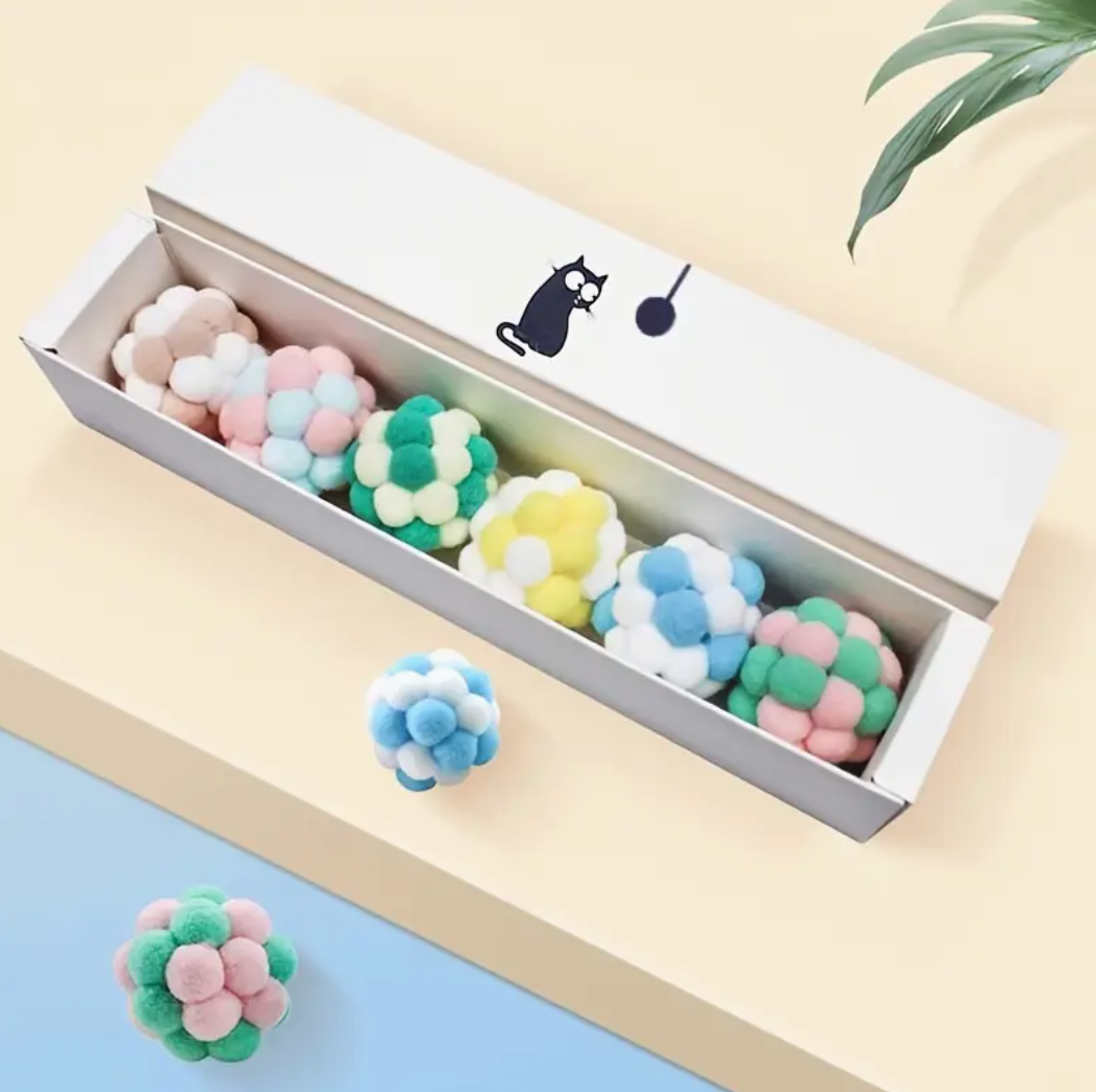 6pcs Rainbow Plush Cat Toy Balls, Teeth Grinding Cat Chew Toys With Built-in Bell, Cat Teaser Toy Pet Supplies