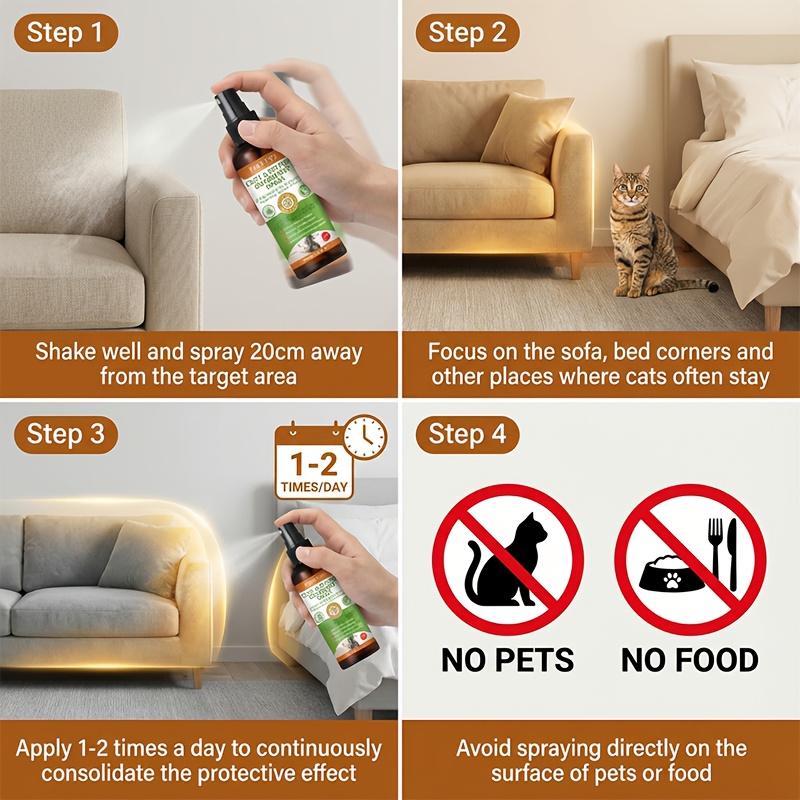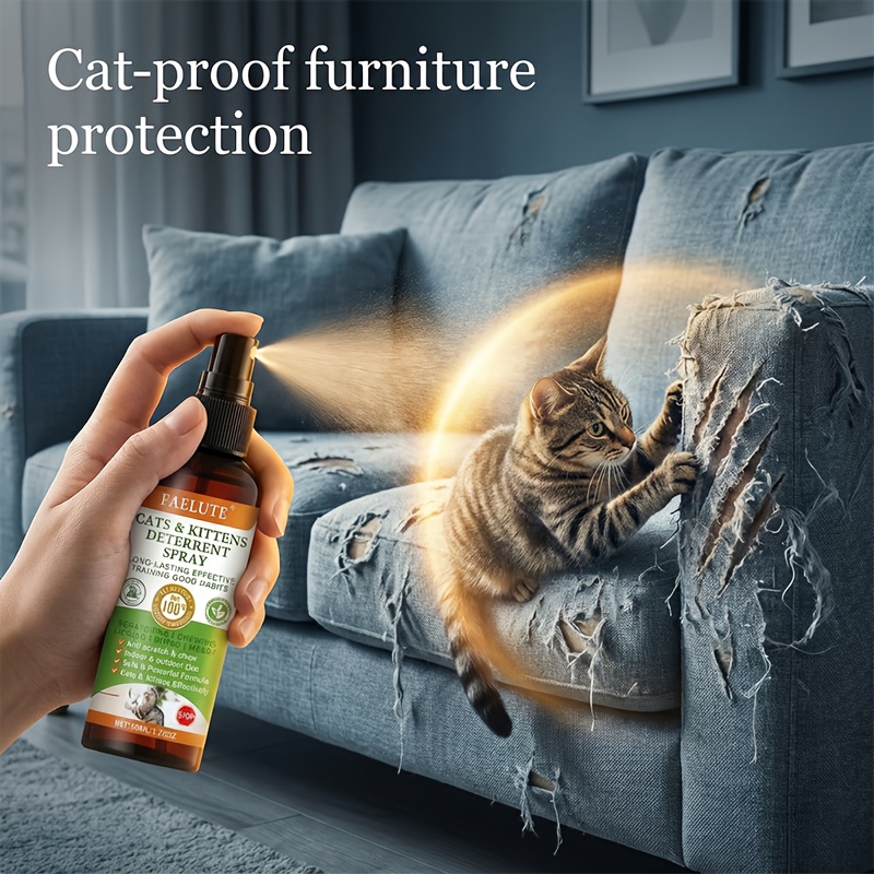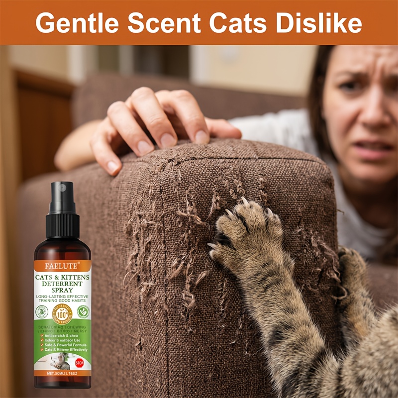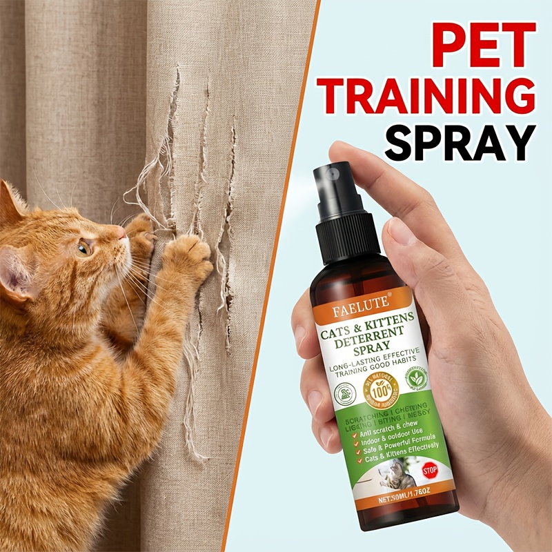 FAELUTE Cat Scratch Deterrent Spray Prevents Cats from Scratching Furniture, Sofas, Carpets, Curtains, and Plants. A Safe Training Spray for Cats and Kittens with a Rich, Fresh Fragrance. Quick-drying for Indoor Home Protection