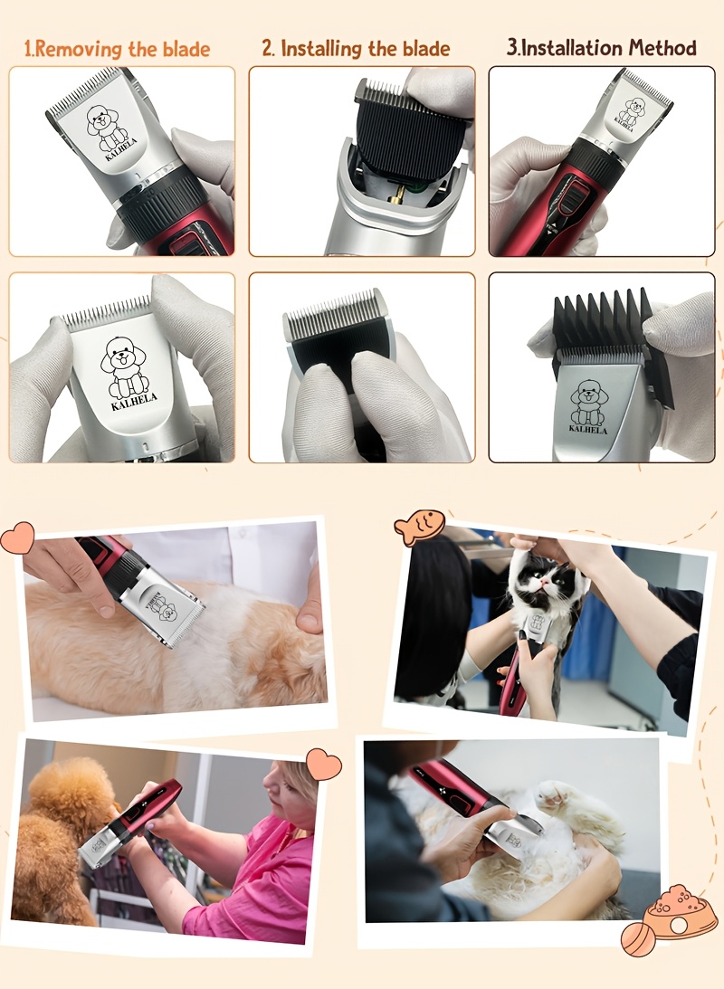 Low Noise Dog Hair Clipper | Rechargeable Cordless Pet Grooming Kit Quiet Electric Trimmer for Dogs & Cats, USB Charging, ABS Material, Lithium Battery-18650 Series