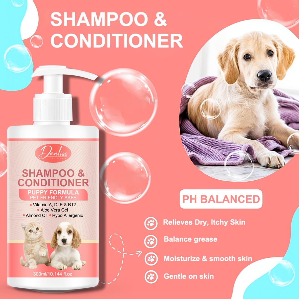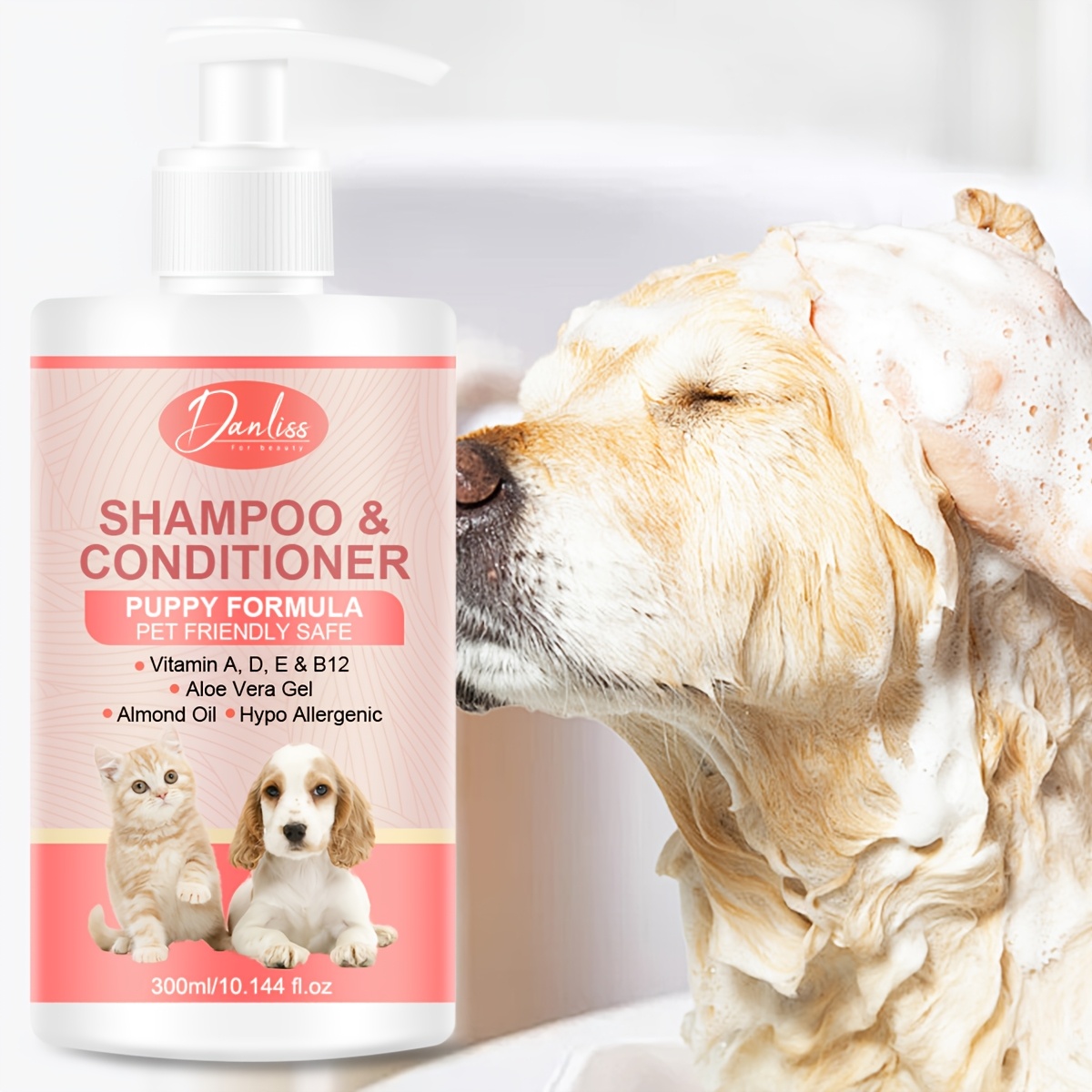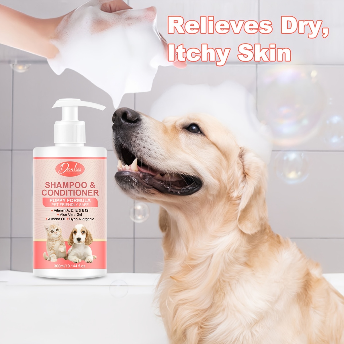 Natural 5-in-1 Dog Shampoo & Conditioner with Vitamin A, Aloe Vera, Omega-3 & Hypoallergenic Formula - Soothes Itchy Light Beige, Moisturizing for Smelly Dogs, 300ml/10.144fl.oz