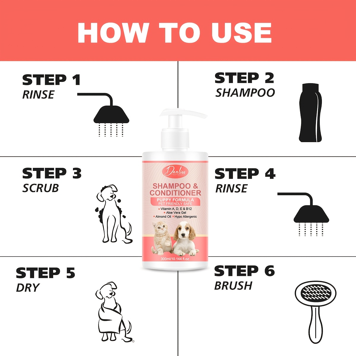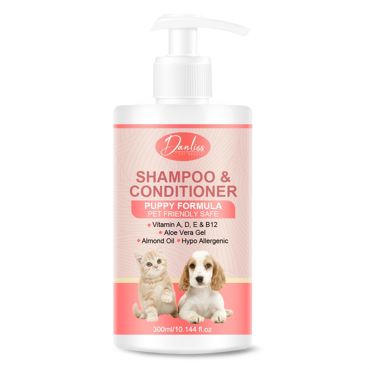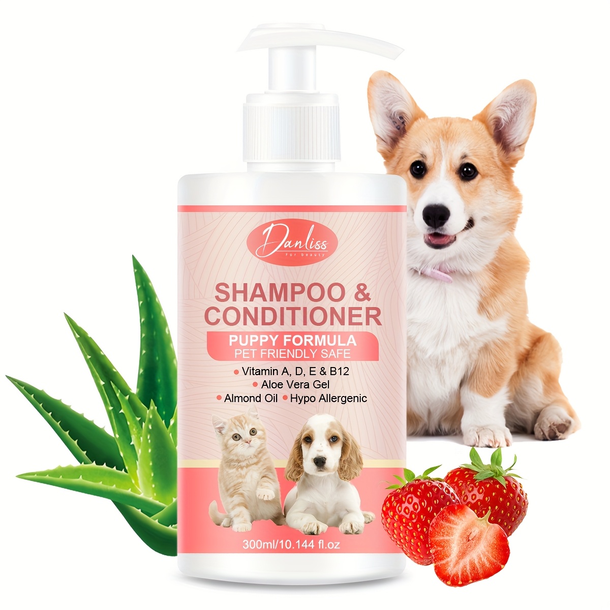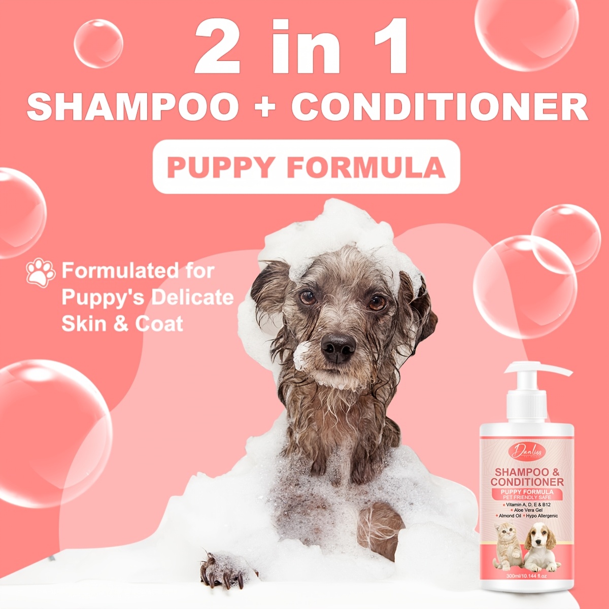Natural 5-in-1 Dog Shampoo & Conditioner with Vitamin A, Aloe Vera, Omega-3 & Hypoallergenic Formula - Soothes Itchy Light Beige, Moisturizing for Smelly Dogs, 300ml/10.144fl.oz
