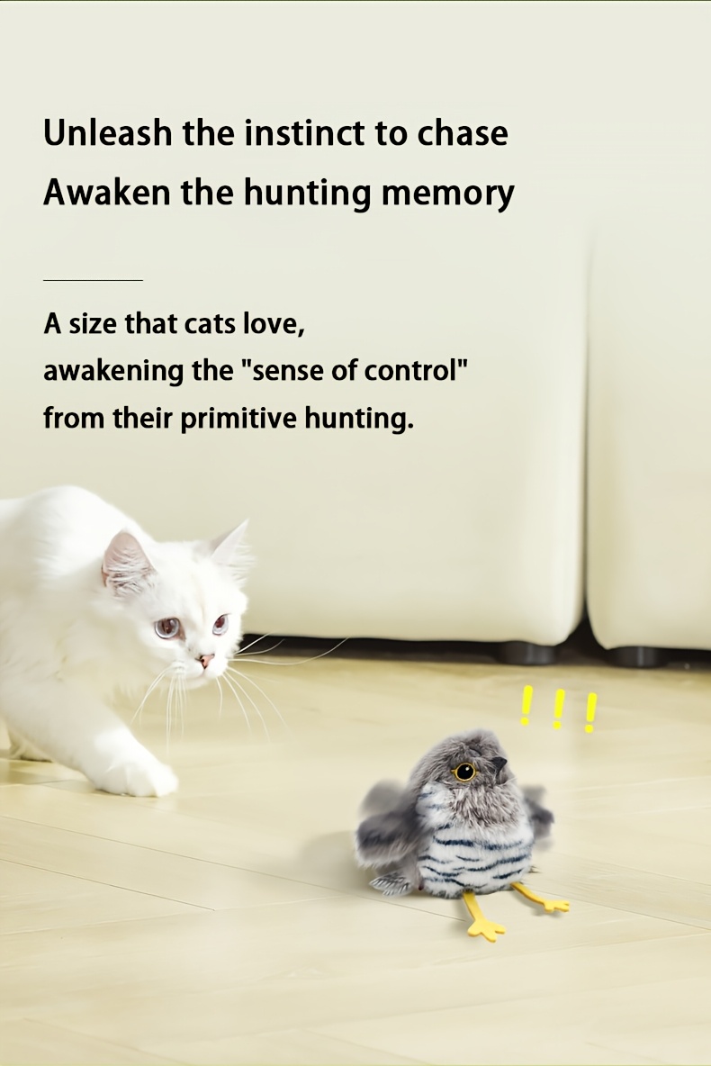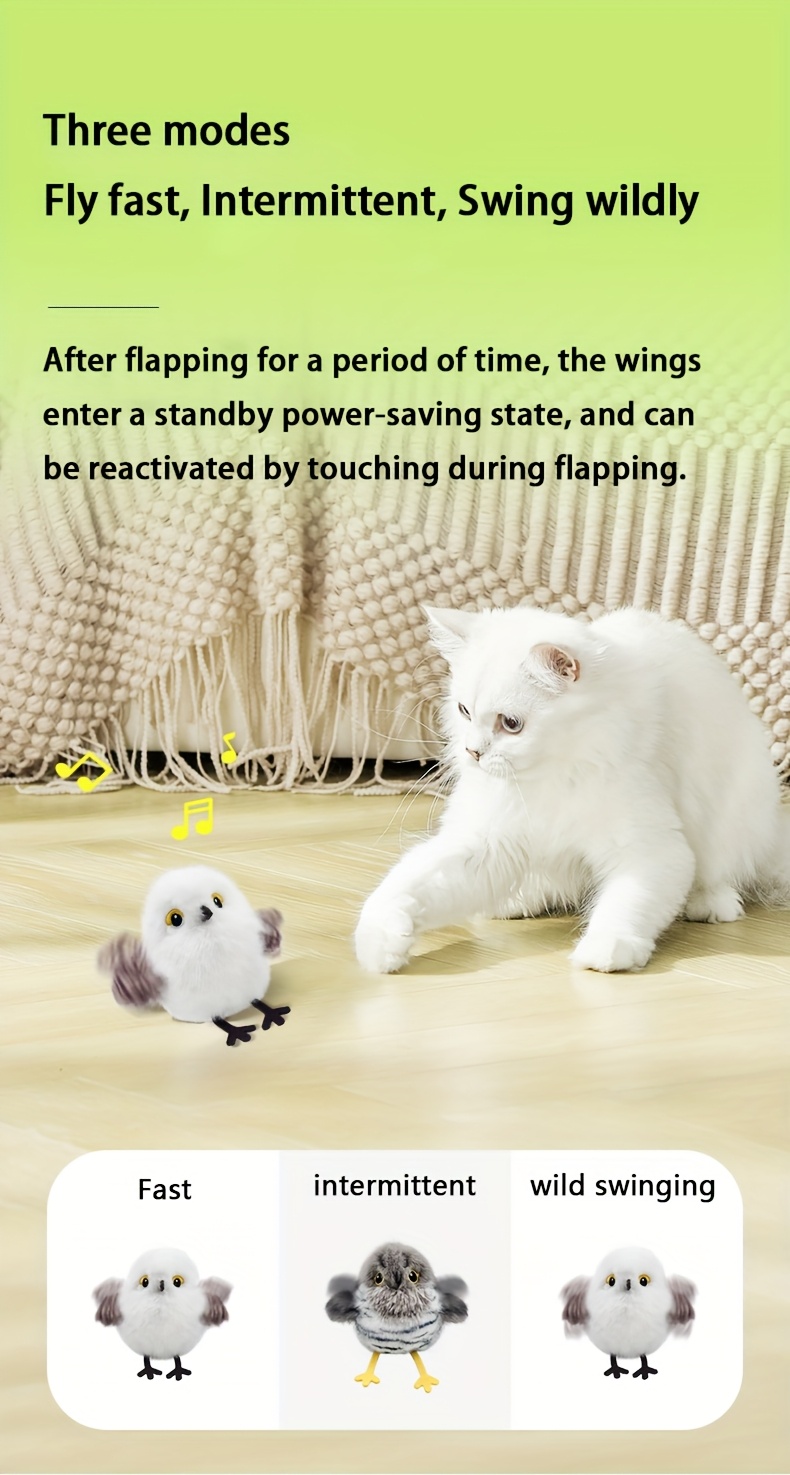 PETGRAVITY Interactive Electric Cat Toy with Smart Motion & Real Bird Sounds, Rechargeable Plush Robot Cat with Flapping Wings, Artificial Feather Tail & Expressive Eyes - Compatible with All Cat Sizes, Durable Polyester Fiber & Plastic Construction, S...